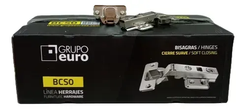 CAJA DE 100 BISAGRAS CAZOLETA CIERRE SUAVE BASE "CLIP" 4 TORNILLOS GRUPO EURO
